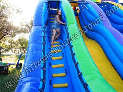 Our 20 foot tall 3 lane slide is perfect for high volume events and features easy to climb steps and 3 super fast slide lanes. We are the leader in high volume water slide rentals in Arizona