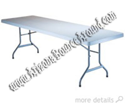 Arizona Bounce Around rents 8' tables for any event and are available for customer pick up. Pick up your 8' table for no additonal charge! Perfect for weddings, birthday parties, block parties, church functions, and school carnivals. Don't forget to check out our extra wide white chairs to go with.