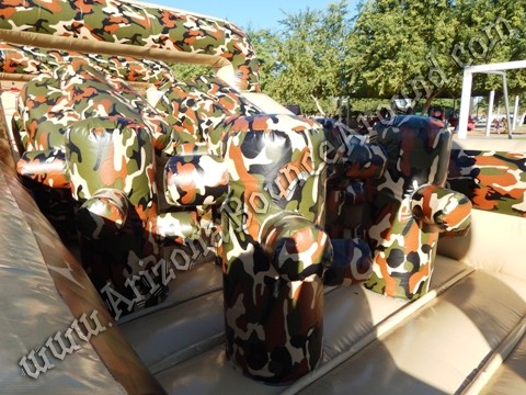 This Military themed obstacle course is 85 feet long and features a duel rope swing and miles of obstacles to run threw making this the ultimate challenge. Perfect obstacle course rentals for adults and team building events