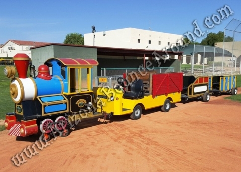 This Train needs a parking lot or field to operate. It will not be able to travel or turn on sidewalks or tight spaces;